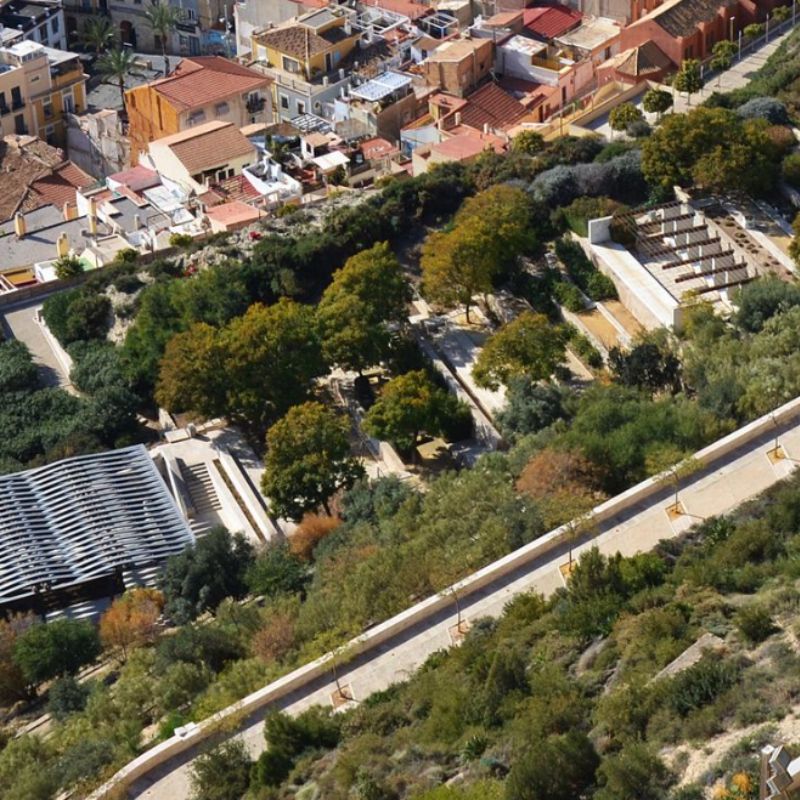Un espacio verde que conecta el castillo con el casco antiguo, con senderos, terrazas y unas vistas increíbles del mar y la ciudad.